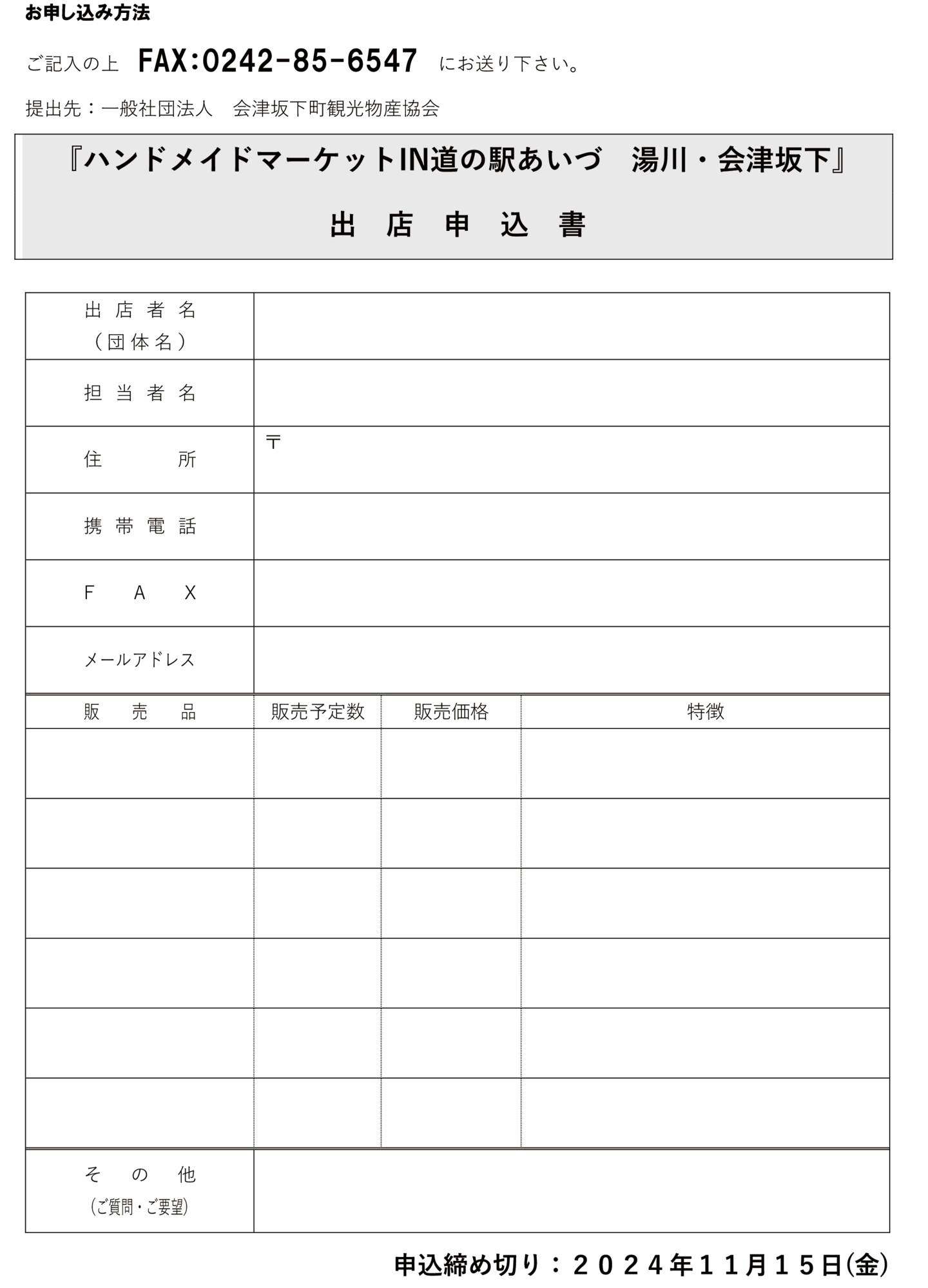 申込用紙ダウンロード⇒ ハンドメイド出店申込書