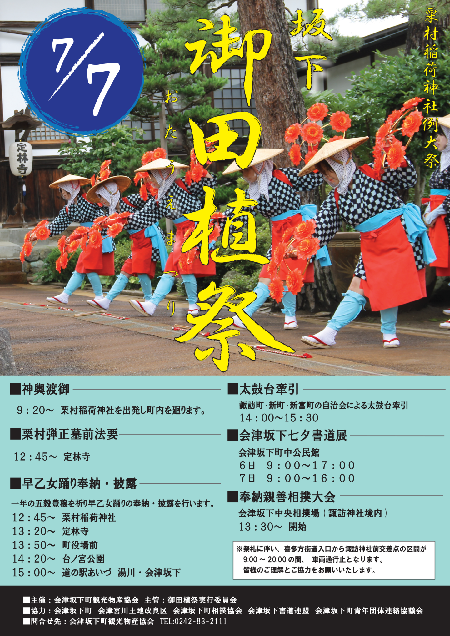 神輿渡御・早乙女踊り・栗村弾正墓前法要・七夕書道展・奉納親善相撲大会などを行いました。