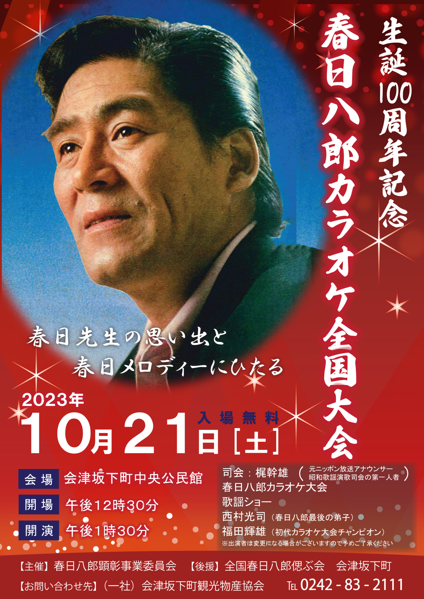 会津坂下町出身の春日八郎の生誕100周年を記念し、春日八郎カラオケの全国大会を開催致しました。