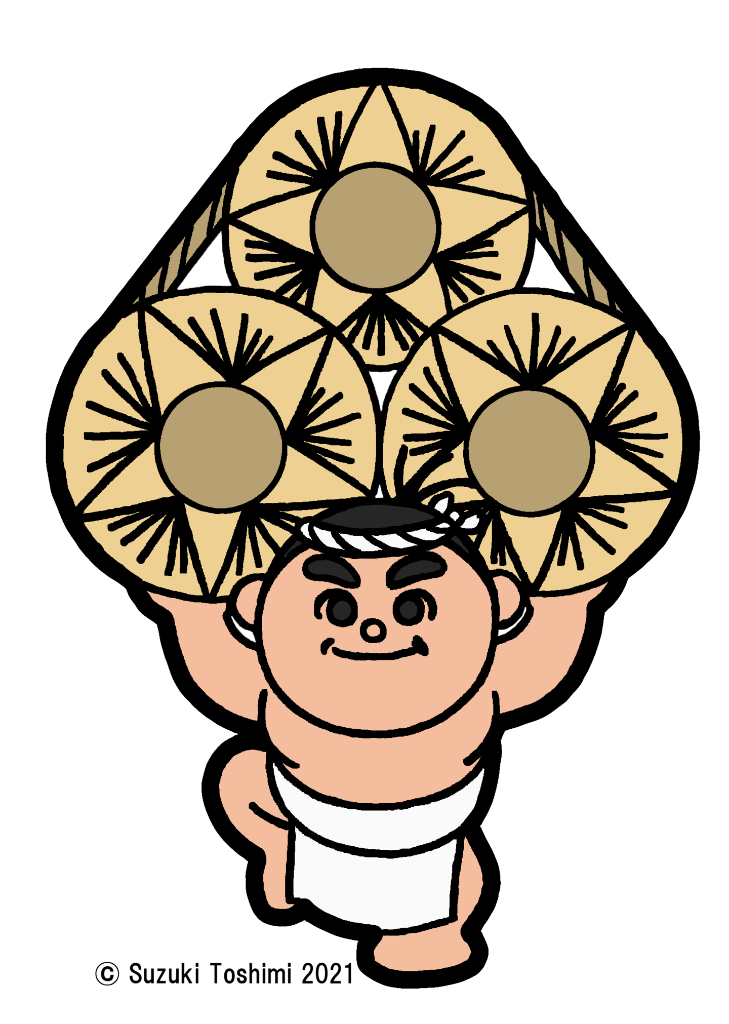 坂下初市奇祭大俵引きの引き子をイメージした、下帯姿で米俵を担ぐわんぱくな男の子です。